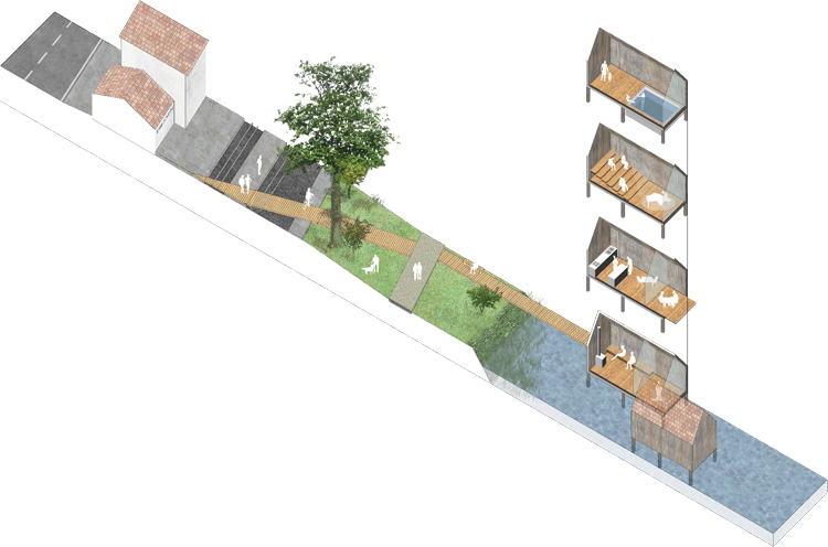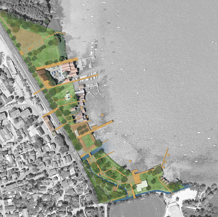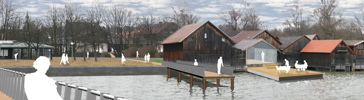 Bestehende Fischerhütten werden durch verschiedene Nutzungskonzepte aufgewertet und in das Freizeitangebot eingebunden. Der Uferbereich wird öffentlich erlebbar ohne die historische Bausubstanz zu gefärden.